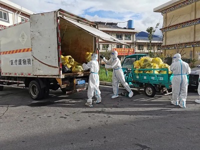 (國策環(huán)保林芝分公司工作人員清運(yùn)醫(yī)療廢物)