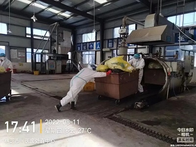 (國策環(huán)保林芝分公司工作人員對(duì)醫(yī)療廢物進(jìn)行安全處置)